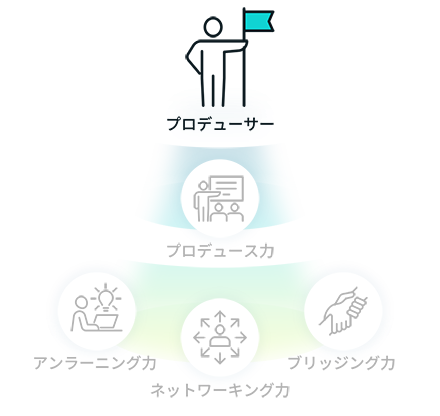 プロデュース力課題を深掘り・定義し、課題に対して技術・仕組みを駆使しソリューションを立案。必要なリソースやサプライチェーン等を定義・構築し事業としての骨格を作ることができる力。三現主義を元にPCDAを高速で回し事業構築ができる力。